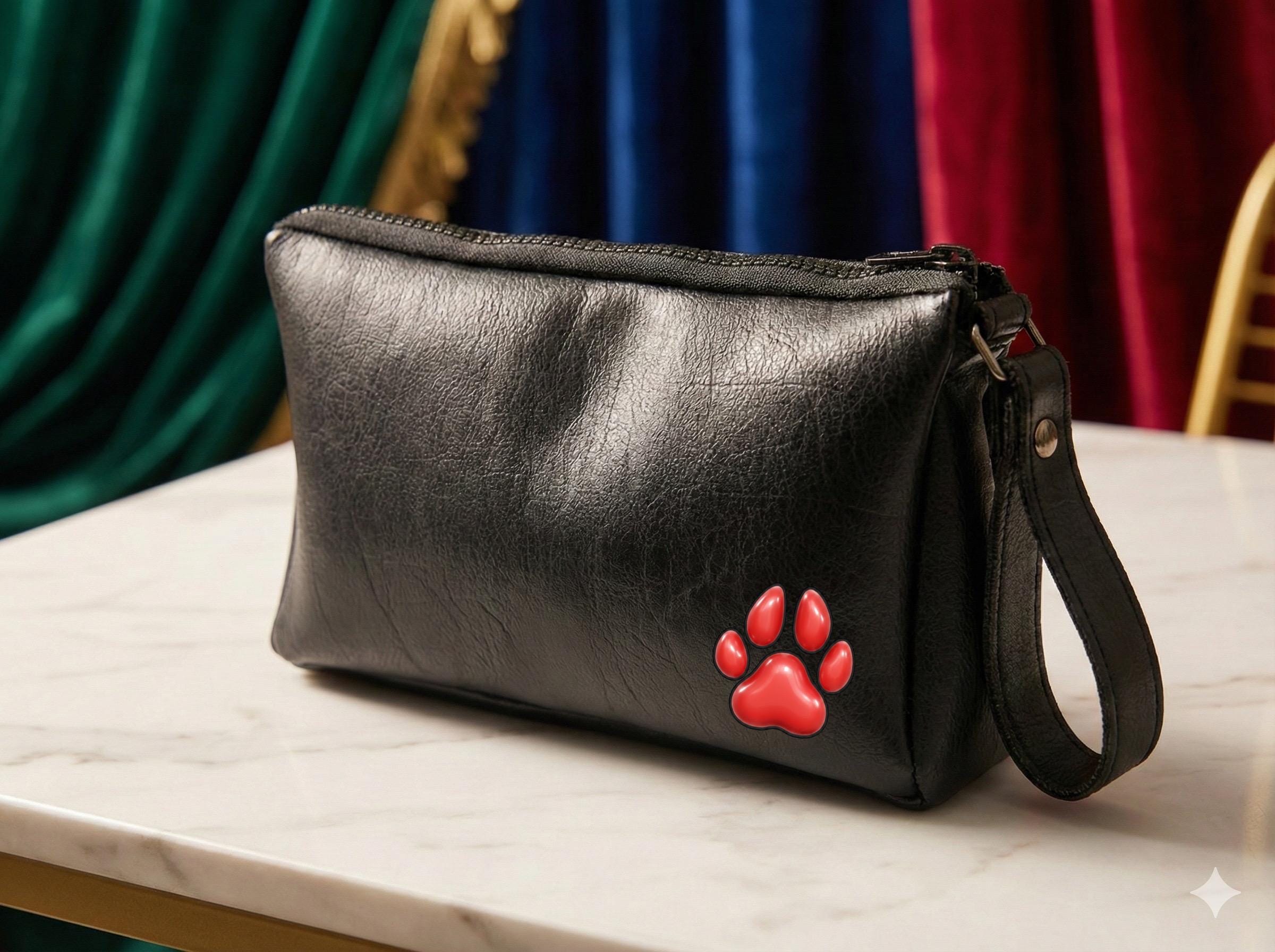 Keep your gear organized and your style bold. This sleek black organizer is built for those who want practical storage with a distinct attitude. Crafted from durable, pebbled leather-style material, it features a rugged exterior that feels great in the hand. The striking high-gloss red paw print on the corner adds a pop of color and personality that stands out from the crowd.